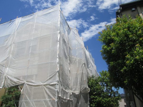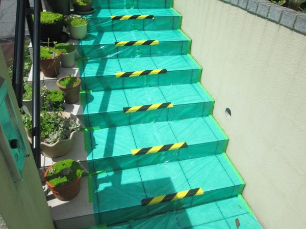 周辺建物が近接していた場合、学校、病院等が近くにある現場では水性塗料の選択をお奨めいたします。工事前には近隣の挨拶と工事の連絡も行っています。